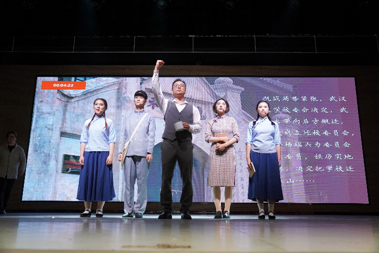 在活力风采展示环节,工商硕三支部以严清华老师编写经济与管理学院院史为线索,通过生动的情境演绎,展现了一代代珞珈经管人的使命与担当。