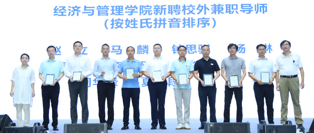 开学典礼上,还进行了多个奖项的颁发仪式,包括经济与管理学院校外兼职导师特别贡献奖、专业学位最受欢迎任课教师奖、优秀毕业论文指导教师奖、新聘校外兼职导师颁发证书以及优秀学生组织表彰。这些奖项旨在表彰在教学和科研工作中做出突出贡献的教师,激励专硕学生发挥创新活力,进一步激发全院师生的积极性和创造力。